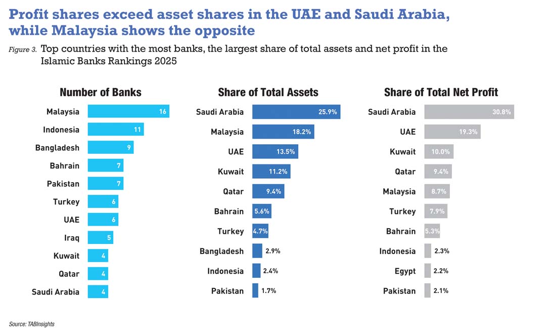 The TABInsights 2025 Islamic Banks Rankings underscore the resilience and growth of global Islamic banking. Middle Eastern banks, especially in Saudi Arabia, the UAE, Kuwait and Qatar, lead in scale, profitability and financial strength, while Asian markets, including Malaysia, Indonesia and Pakistan, are emerging growth hubs, expanding financial inclusion and market sophistication.