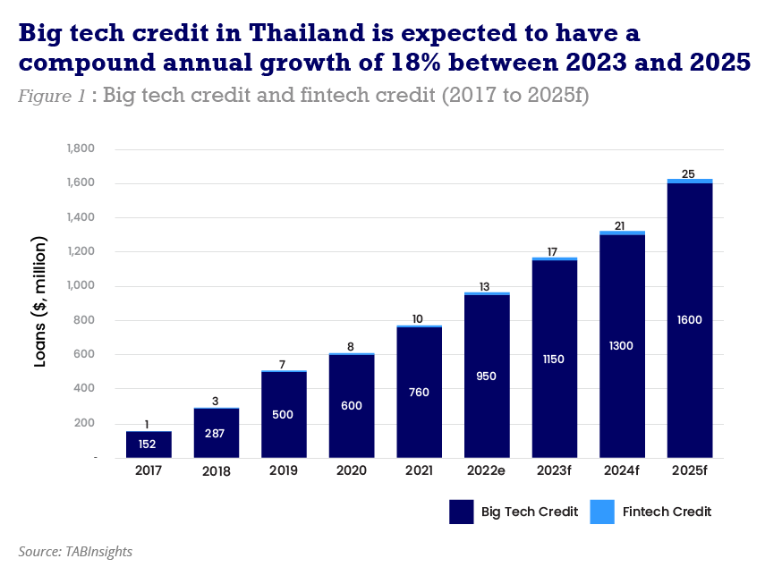 - Ninety-nine percent of alternative credit in Thailand is driven by big techs like LINE and True Money.